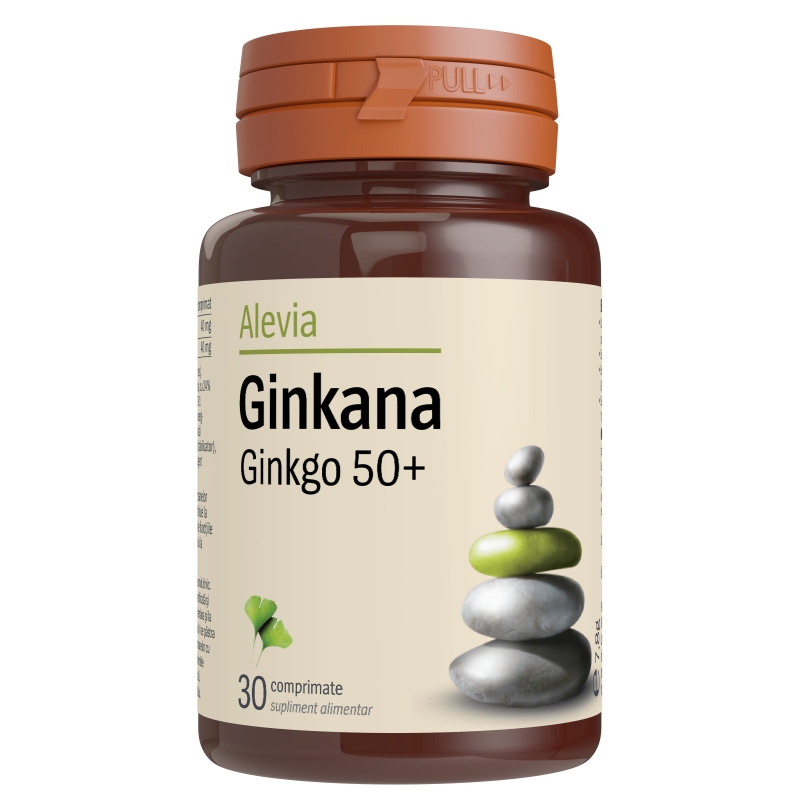 Ginkana Ginkgo Biloba se distinge prin conținutul de extract pur de Ginkgo biloba de cea mai înaltă calitate, concentrat în doze optime și dublu standardizat în principii active (24% ginkgoflavone, 6% lactone terpenice).Un 1kg de extract se obține din 50 kg de frunză de Ginkgo.